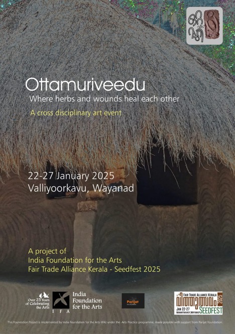 The immersive, site-responsive installation Ottamuriveedu: Where Herbs and Wounds Heal Each Other by CF John and his artistic collaborators, implemented by India Foundation for the Arts supported by Parijat Foundation, exemplifies the generative possibilities of creative ecologies within the Indian subcontinent. By engaging adivasi youth, poets, and artists in a participatory practice deeply rooted in local histories and ecologies, the project embodies the world-building ethos that TJ Demos describes. However, as Ngoru Nixon warns, the term adivasi itself demands careful contextualization, resisting homogenization while acknowledging its everyday resonance in Kerala. CF John’s approach, grounded in collaboration and ethical engagement, sidesteps both the commercial art market and state-mediated narratives of indigeneity, instead foregrounding lived experiences, artistic affect, and ecological interconnectedness. In this precarious landscape, shaped by environmental vulnerability, agrarian uncertainties, and histories of displacement, the project opens space for dialogue, resistance, and alternative futures. In doing so, it not only reframes artistic practice as a form of participatory jurisgenerative aesthetics but also reimagines ecology as a deeply political creative category.