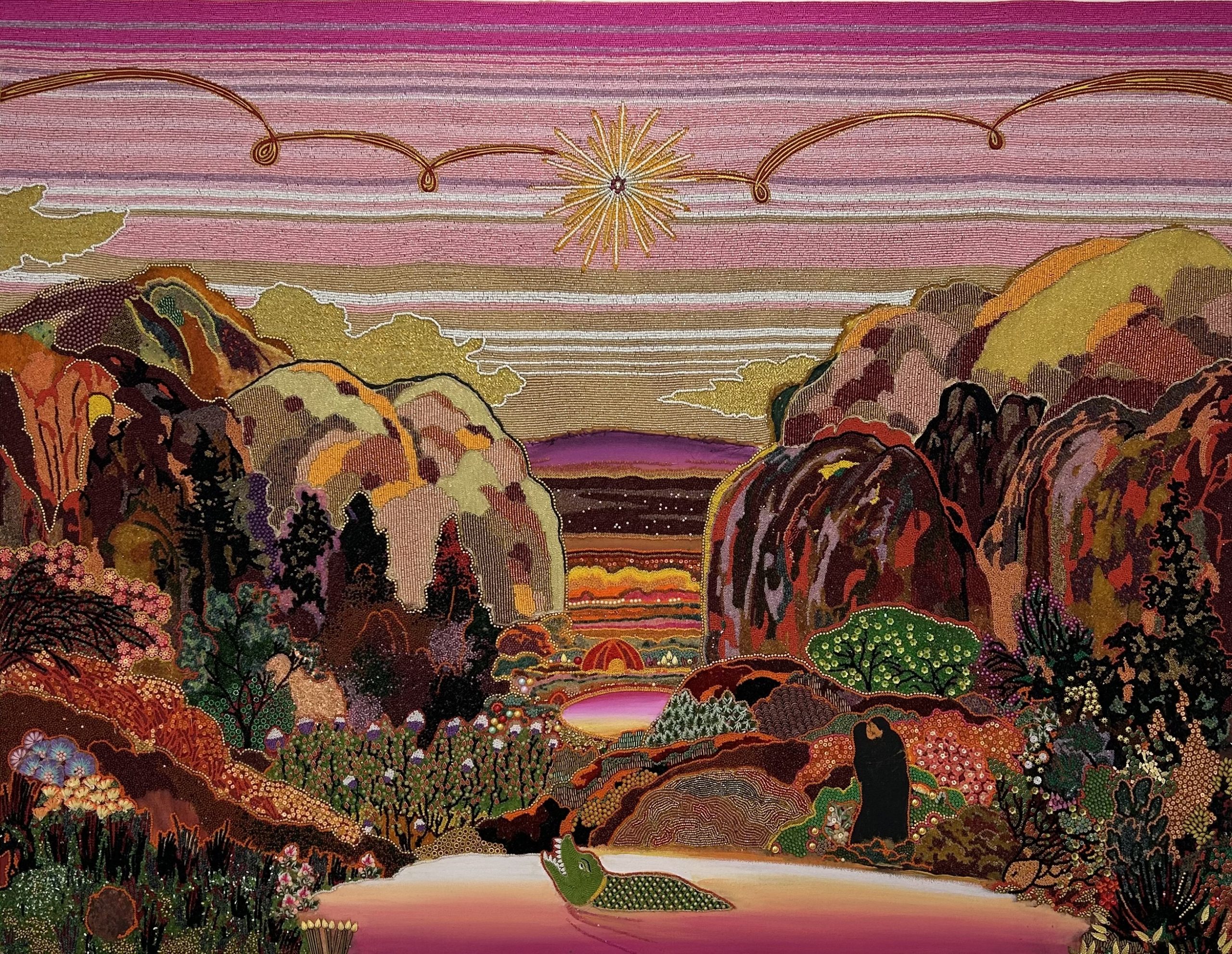 Beads, Cloth, Embroidery and Mixed Medium on Canvas,