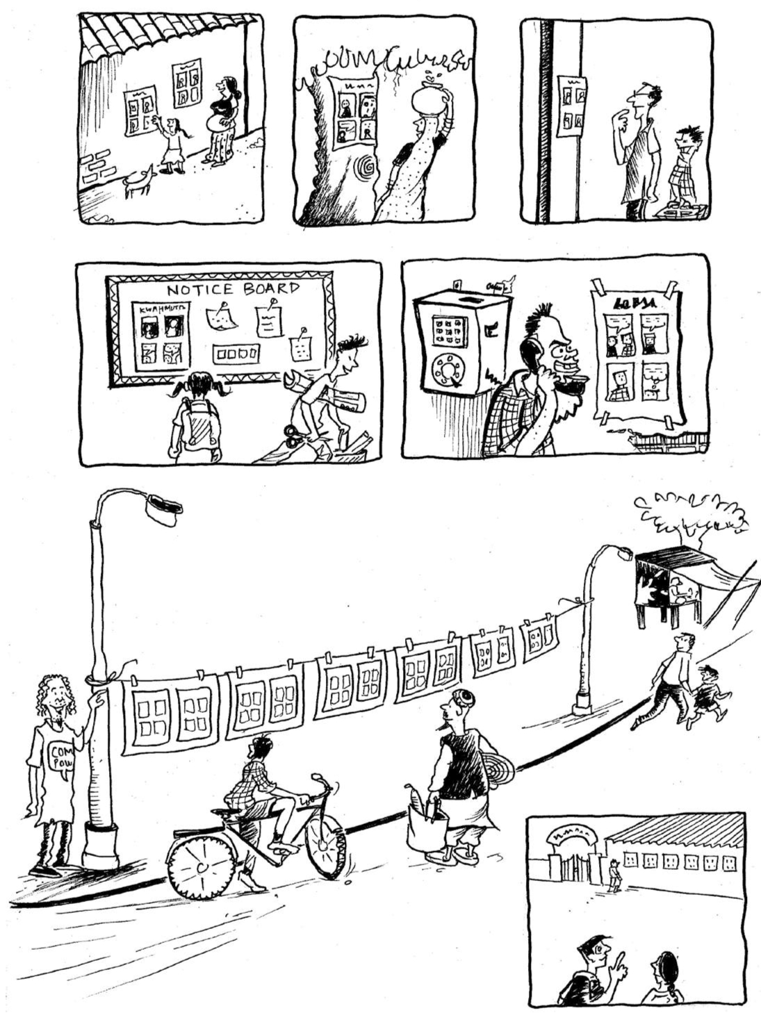 India has a powerful network for comics at the grassroots level called World Comics India, which mobilizes people’s agency to represent their life experiences. In the late 1990s, Sharad Sharma, a visual journalist, founded this network which promoted work not by professional artists but by the very people who sought the agency to improve their lives. Making such comics served as an effective means of communication between ordinary people and state officials, unearthing local stories and issues. Volunteers have been helping people make comics, and photocopy and paste in public places (fig.2). They also disseminate information relating to health and education through comics. WCI has run campaigns across different states- Rajasthan to Mizoram, Kashmir to Tamil Nadu- on issues ranging from female foeticide to caste segregation in prisons. By 2005, it had chapters in Pakistan, Sri Lanka, and Nepal. It is still a functioning organization, spread to over 20 countries. They have published Development Comics or DevCom, a series of comic anthologies by several local artists on issues related to social development. Whose Development? (2009) addresses how adivasis are being affected by big development projects in Jharkhand, fishermen’s harsh living situations in Goa, etc., and Parallel Lines: Comics anthology on development (2010) having stories including a daily wage laborer’s life during Commonwealth games 2010, legal victory of farmers over BT cotton in Madhya Pradesh and more.